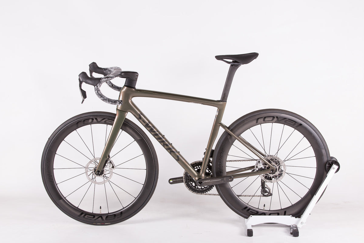 Now, the world's fastest race bike joins the SRAM RED AXS power-metered groupset, the lightest electronic groupset ever made, and a tubeless-ready Roval Rapide CLX II wheelset. All S-Works Tarmac SL8 models are delivered with a Roval Rapide cockpit to save weight and to get the cockpit as fast as possible.